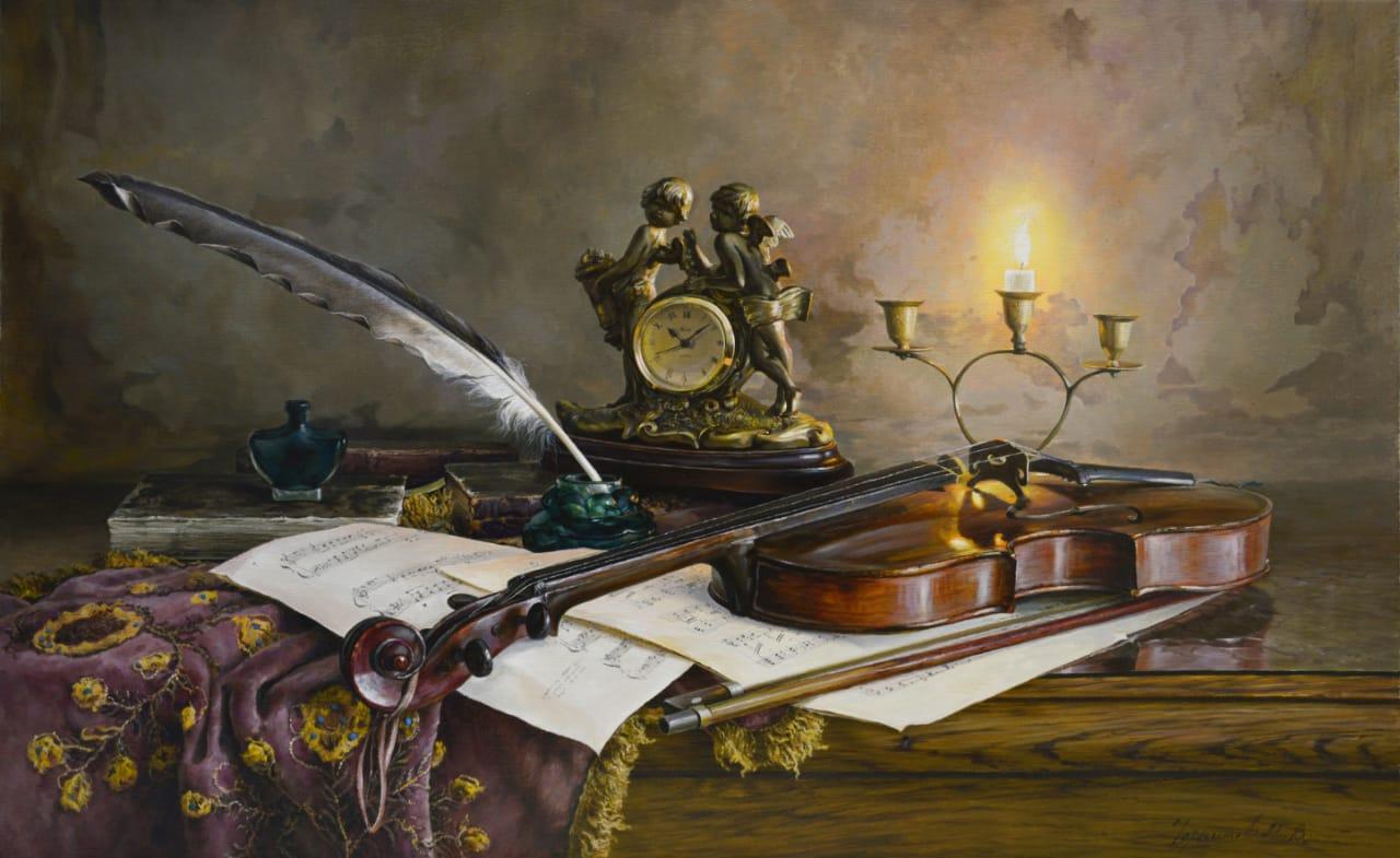 Натюрморт со скрипкой и свечами Чернышов М.В. Натюрморт со скрипкой и свечами